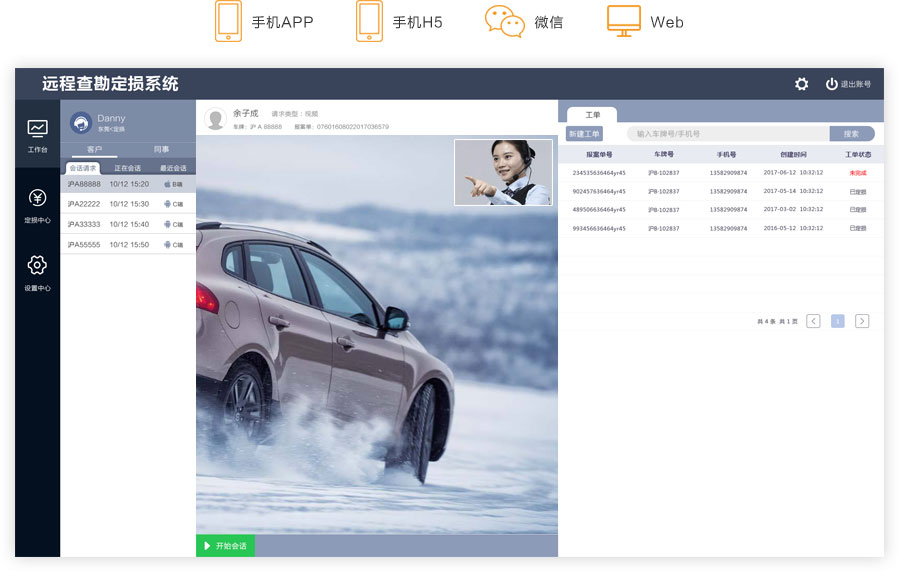 用户多渠道\多类型呼叫定损、无须安装客户端,给用户多种选择性